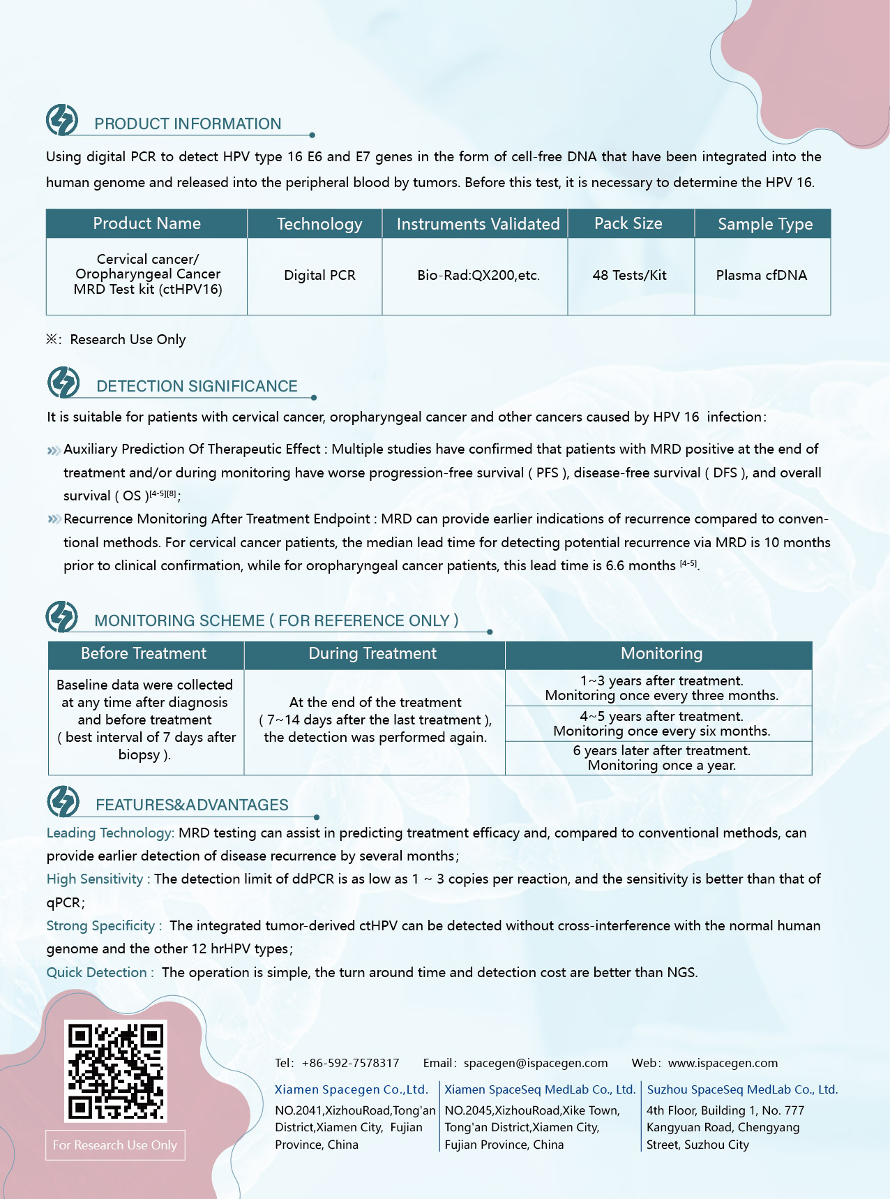 Cervical cancer/Oropharyngeal Cancer MRD Test kit (ctHPV16) (Digital PCR)