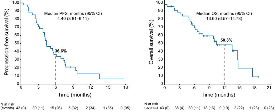 图4 贝莫苏拜单抗联合安罗替尼:OS和PFS的Kaplan-Meier分析图