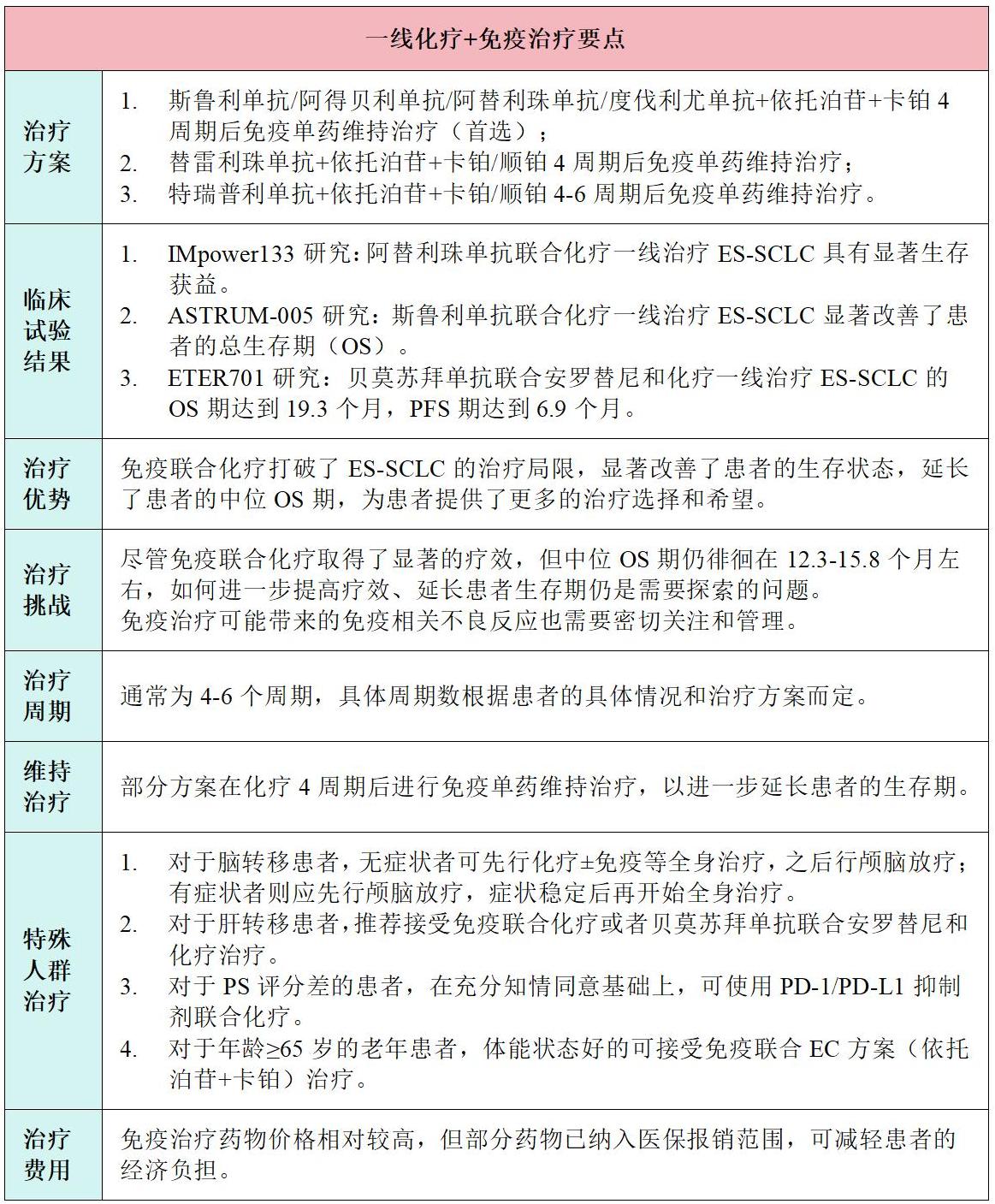 表1 一线化疗+免疫治疗要点