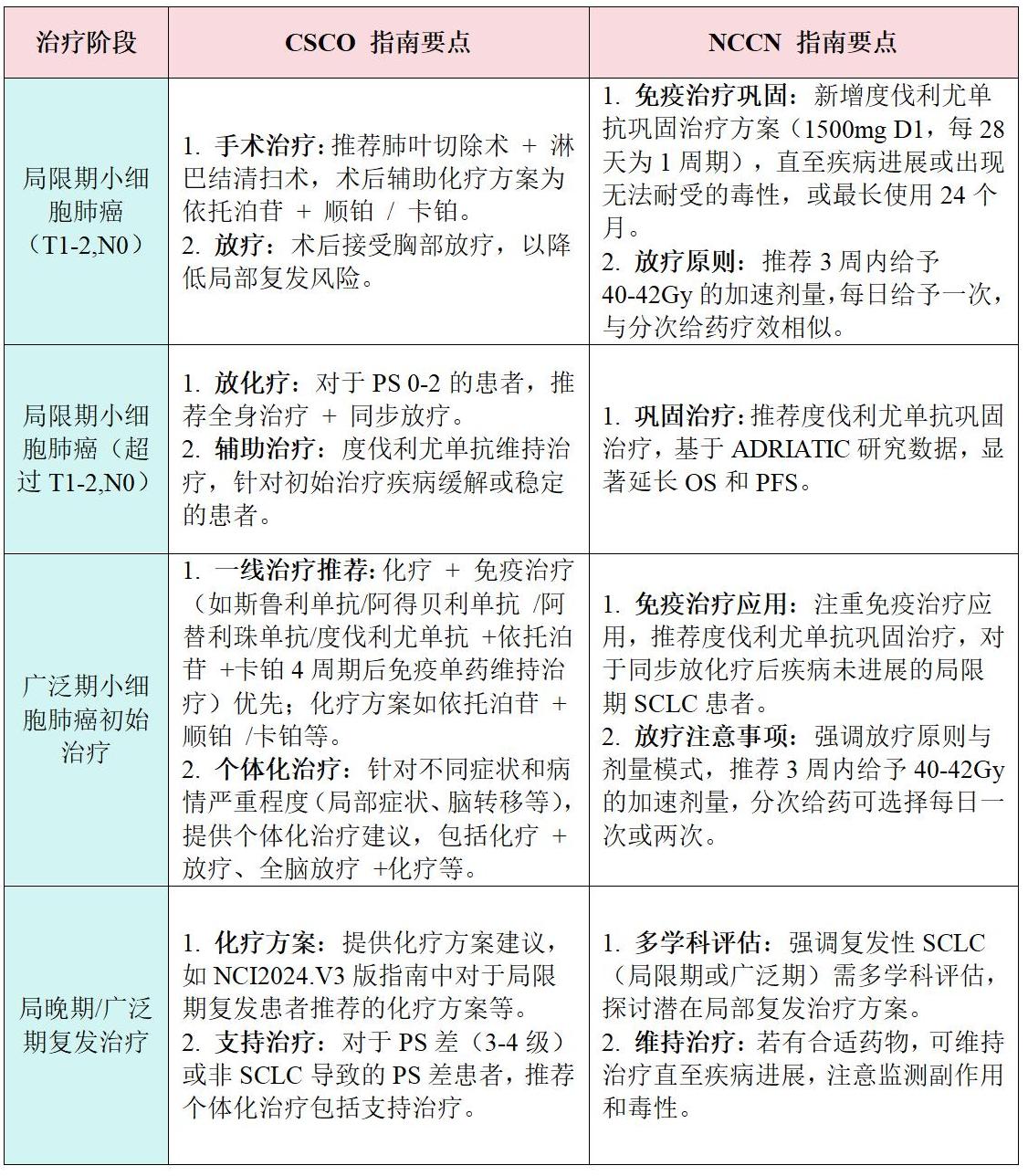CSCO 指南[8]与 NCCN 指南[9]在小细胞肺癌治疗方案上存在一些差异。