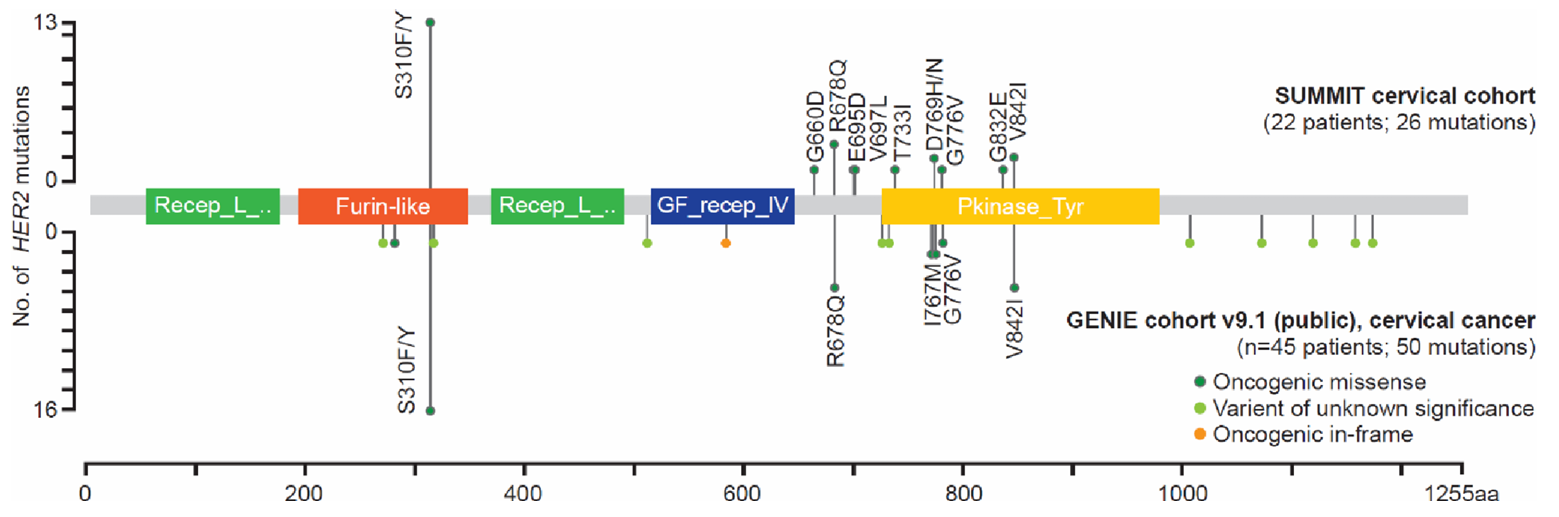 图8 SUMMIT研究中宫颈癌患者的HER2突变谱[8]