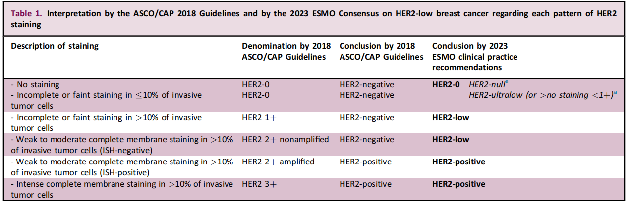 图1 ESMO指南关于HER2 low和HER2 ultralow定义