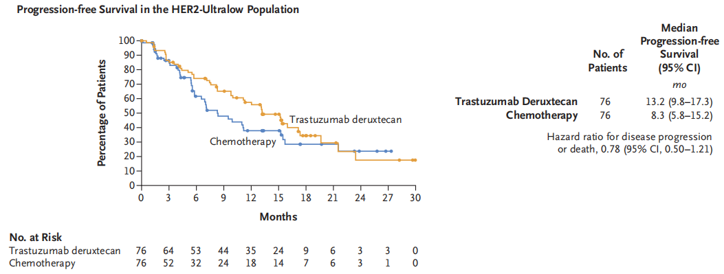 图10 DESTINY-Breast 06研究HR+/HER2 ultralow人群PFS