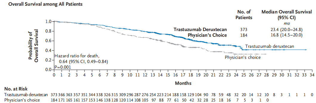 图8 DESTINY-Breast 04研究(中位随访32.0个月)OS