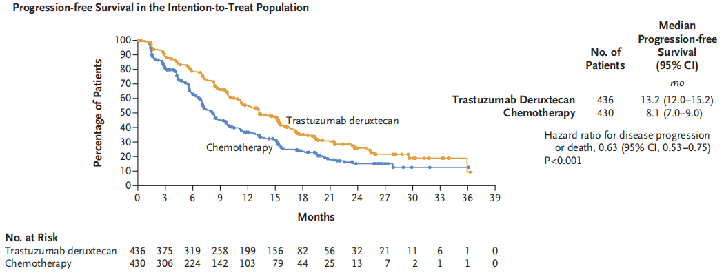▲图3 DESTINY-Breast 06研究ITT人群PFS