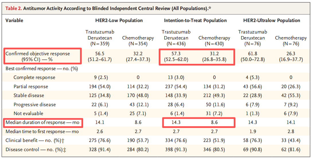▲图4 DESTINY-Breast 06研究ITT人群ORR和DOR