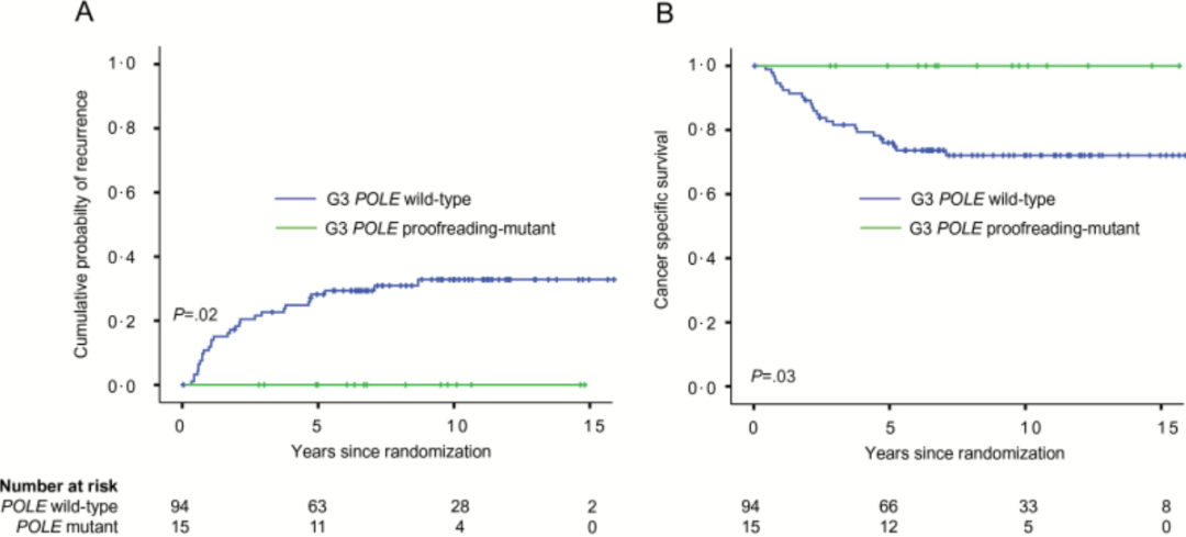 ▲POLE突变型预后良好,即便是G3肿瘤[8]
