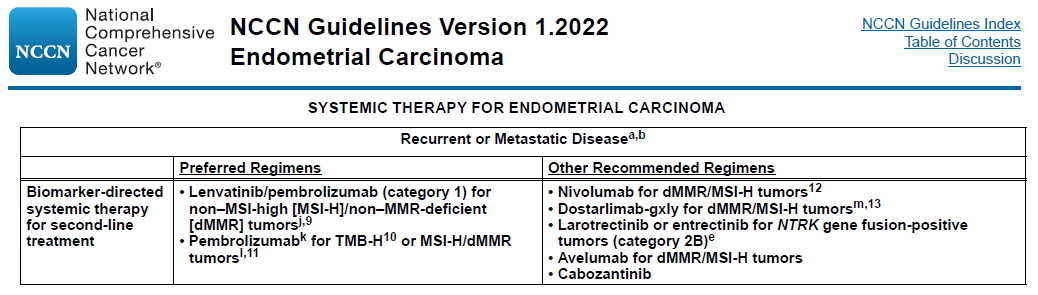 2.dMMR/MSI-H是帕博利珠单抗、纳武利尤单抗、Dostarlimab和Avelumab等ICI药物在子宫内膜癌患者治疗时的伴随诊断或补充诊断[1]。
