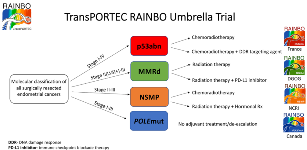 4.p53异常型子宫内膜癌患者与高级别浆液性卵巢癌和基底样乳腺癌之间具有分子机制相似性,约一半的患者存在HRD[3]。RAINBO研究在探索放化疗联合PARP抑制剂的疗法[15]。