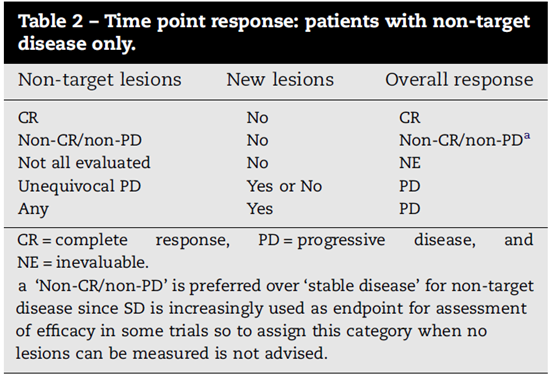 非靶病灶 :所有不可测量的疾病均为非目标病灶病灶。所有未鉴别为目标病灶的可测量病灶也纳入非病灶疾病。