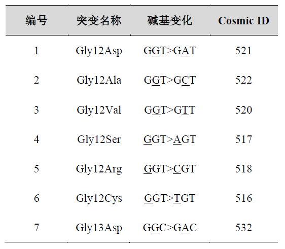 人类KRAS基因12、13密码子上7种热点突变