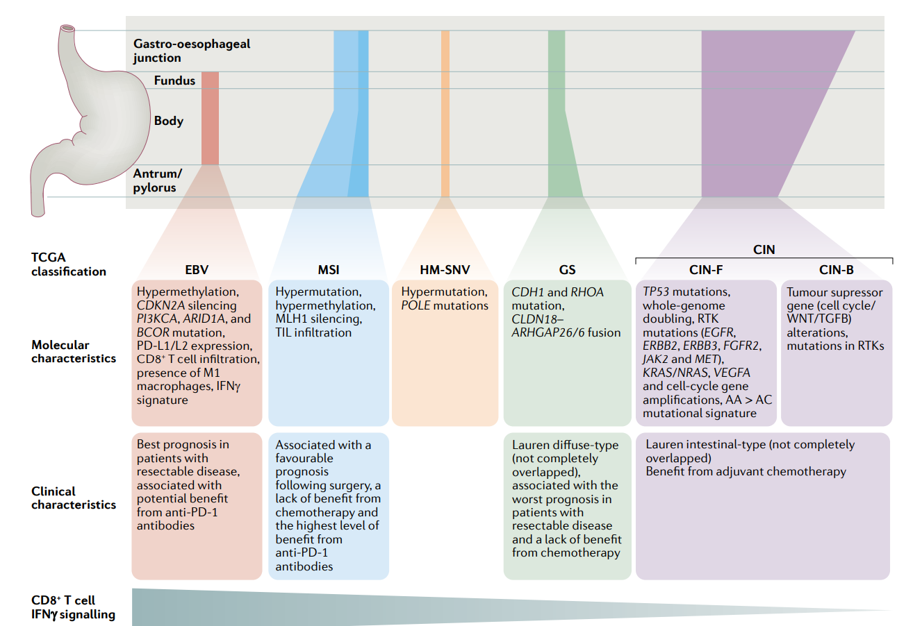 胃和胃食管交界处腺癌TCGA亚型解剖分布的分子和临床特征